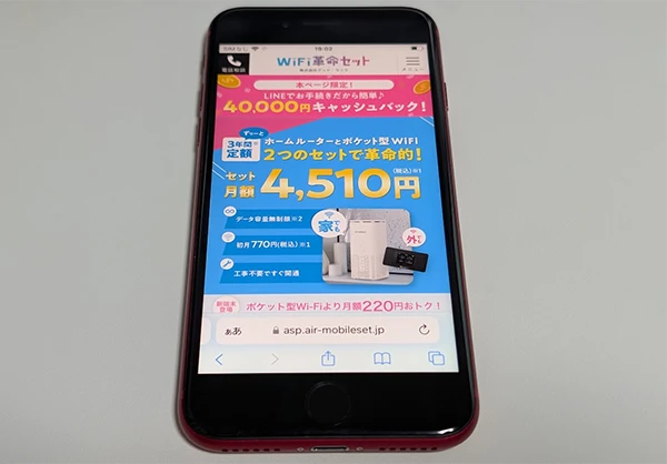 WiFi革命セットは、モバイルルーターとホームルーターが利用出来て、3年間は月額4,510円という格安の料金設定です。