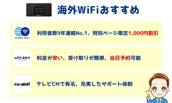 なお、当サイトでおすすめしている方法は、海外用ポケット型Wi-Fiのレンタルです。