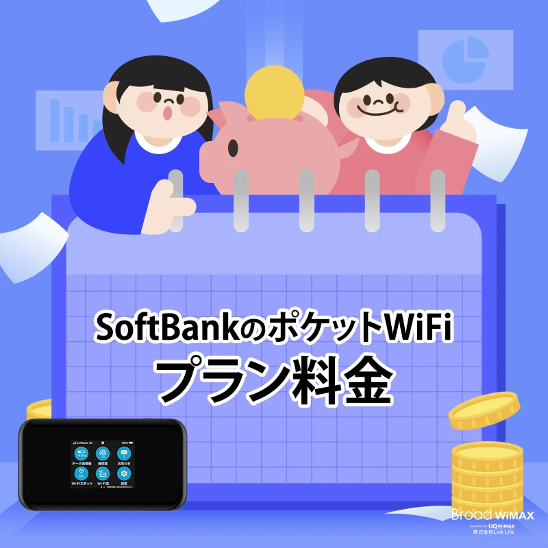 Broad WiMAXでは、SoftBankよりも安く、通信量も無制限のポケット型WiFiが利用可能です。