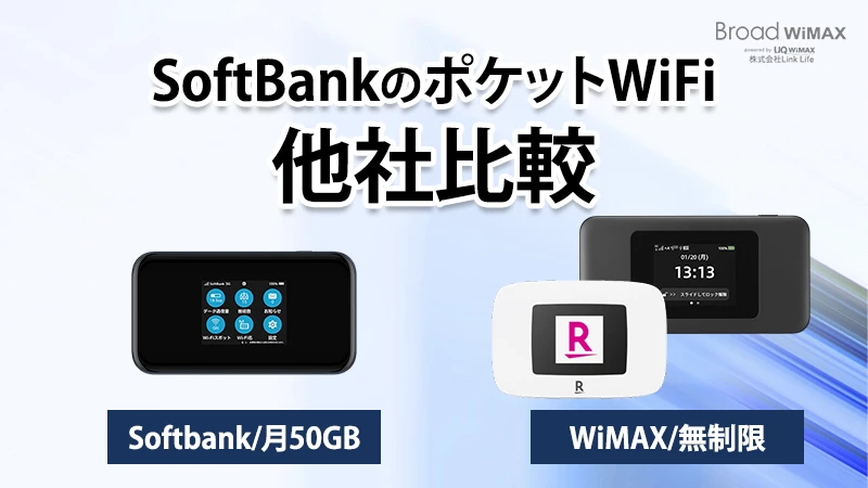 なお、他社のポケット型WiFiと料金を比較したい場合は「ソフトバンクのポケットWiFiと他社のモバイルWi-Fiの料金比較」より確認可能です。