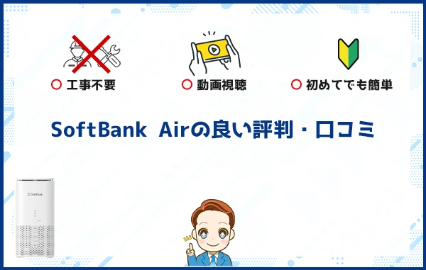 SoftBank Airの良い評判として多く見られたのは、「工事不要ですぐに使える手軽さ」と、「日常利用には十分な通信性能」でした。