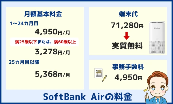 SoftBank Airの月額基本料金は5,368円ですが、割引により安く利用することが可能です。