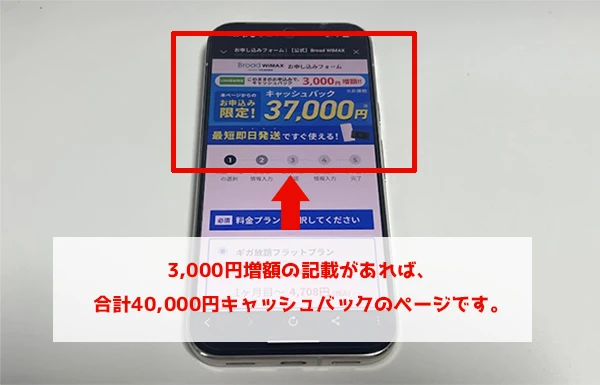 特別ページ経由で申し込みをしないと37,500円キャッシュバックは適用されません。