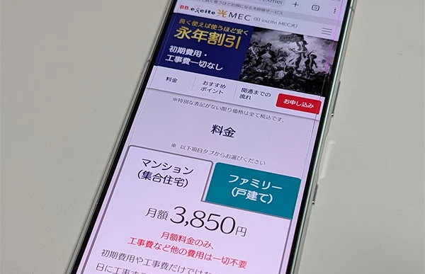 安いWi-Fiを探している人で、ポケット型WiFiやホームルーターを選ぶ人が多いですが、BB.excite光MECは光回線なのに料金が安く使えるためおすすめです。