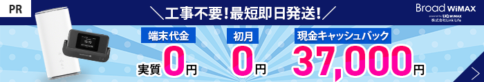Broad WiMAX | 132,488円 | 初月0円 1カ月目以降:4,708円 | 実質無料 | 37,000円キャッシュバック |