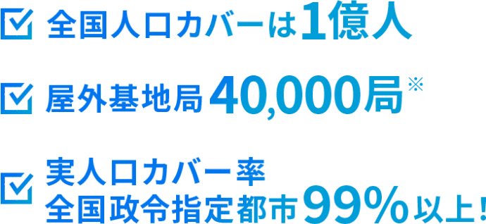 ※2 サービスはベストエフォート型サービスです。記載の速度は技術規格上の最大値であり、実使用速度を示すものではありません。エリア内であっても、お客様のご利用環境、回線の状況等により大幅に低下する場合があります。通信速度は機器の能力に依存します。通信速度は、今後、速度低下も含め、変更になる可能性があります。