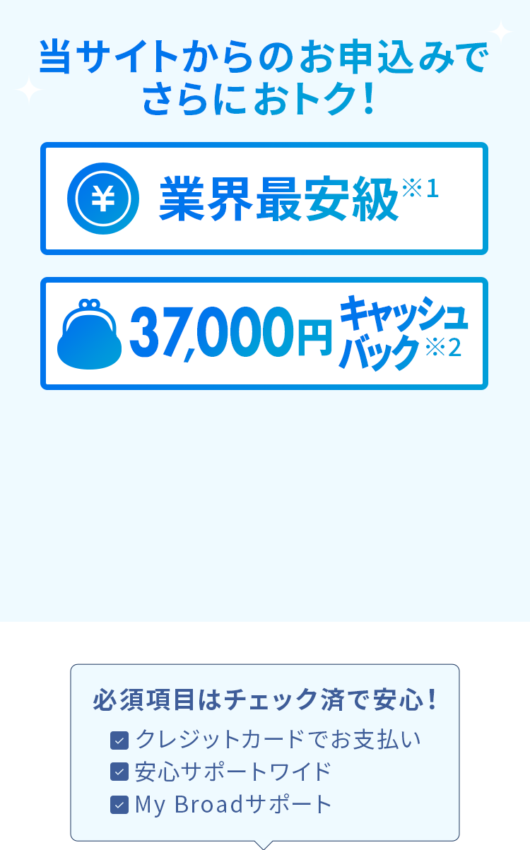 ※安心サポートワイドとMyBroadサポートの2つのオプションに初回加入いただくことが条件です。オプションご加入後、必要ない場合いつでも解約いただけます。