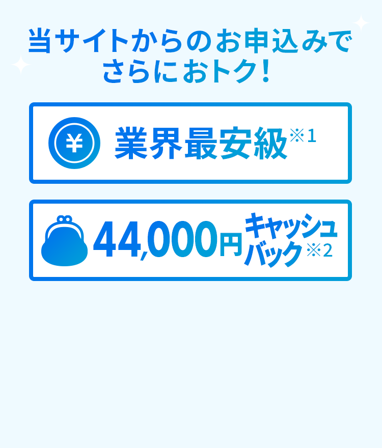 翌月以降最大2年間2,200円/月割引 3年目以降1,027円/月割引 |