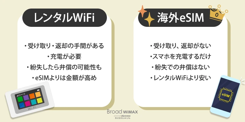 eSIMなら、スマホだけで完結して荷物も増えず、1日あたりの料金も安いため、コスパを重視する人にも人気です。