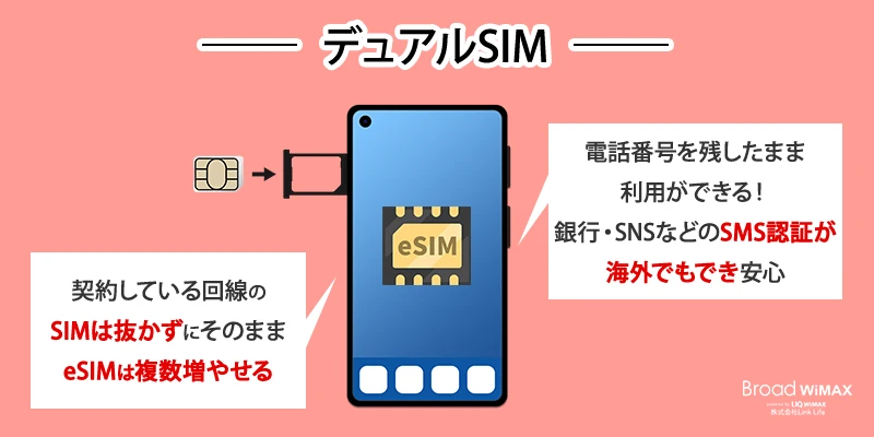 eSIMはスマホに追加で読み込む方式なので、日本のキャリアSIMを抜く必要がありません。