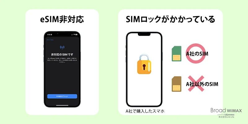 スマホがeSIM非対応・SIMロックがかかっていると使用できない