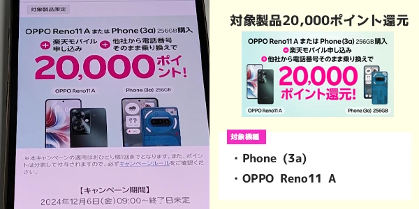 楽天モバイルショップ限定のキャンペーンもいくつかあるため、店舗での購入の方がお得な場合もあります。