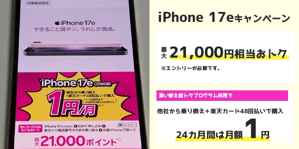 ※楽天モバイルでのiPhone 17シリーズの価格記載あり - iPhone 16eキャンペーン