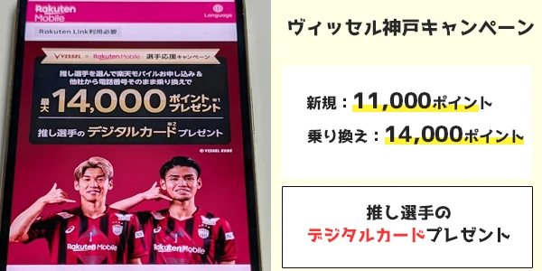 新規11,000ポイントもらえる、乗り換え14,000ポイント - ヴィッセル神戸キャンペーン