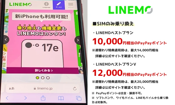 他社からSIMのみの乗り換えで最大15,000円相当のPayPayポイント還元 - 端末セットの場合