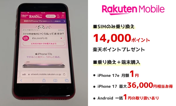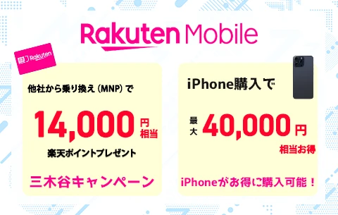楽天モバイル|SIMのみ乗り換えで最大14,000ポイント還元、iPhoneもお得に購入可能
