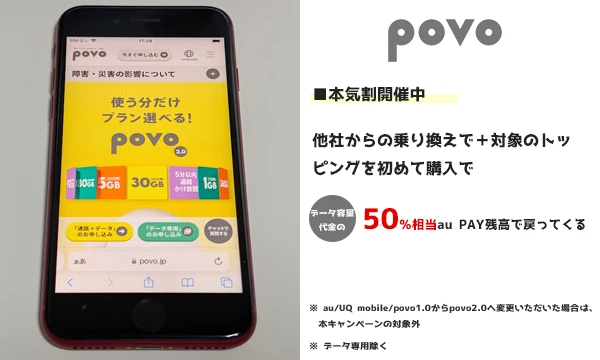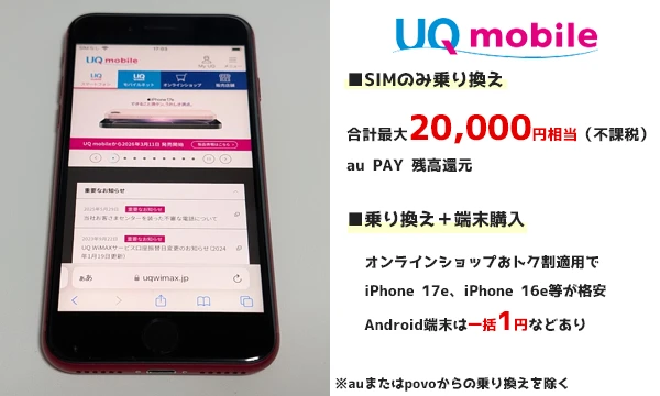 | UQモバイル | 最大20,000円相当 | au PAY |
