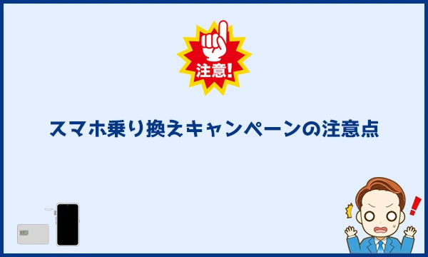 スマホの乗り換えキャンペーンは、申し込めば必ず特典がもらえるわけではなく、適用条件を満たす必要があります。条件を満たしていない場合、特典が無効になることもあるため注意が必要です。