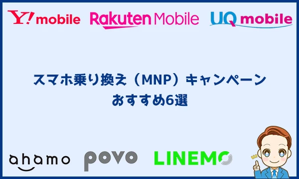 スマホ乗り換え(MNP)キャンペーンおすすめ6選