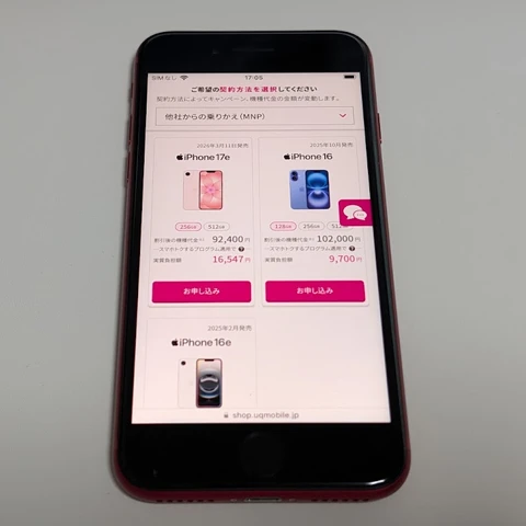 iPhone 17e 256GBが月額1円、iPhone 17 購入で最大36,000円相当お得、1円スマホの取り扱いあり