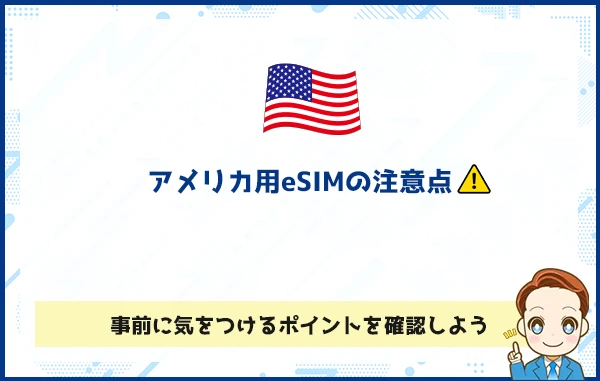 アメリカでeSIMを利用する場合、事前に確認しておきたいポイントがいくつかあります。
