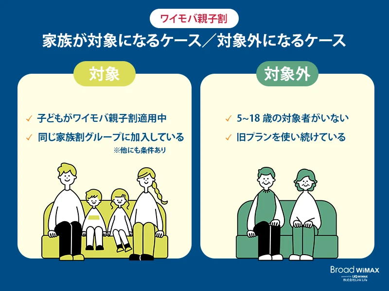 次の条件の全てを満たしている家族は、ワイモバ親子割の対象になります。