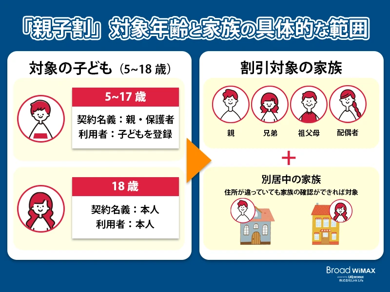 ワイモバ親子割は、5〜18歳の子どもだけでなく、その家族も割引対象にできます。