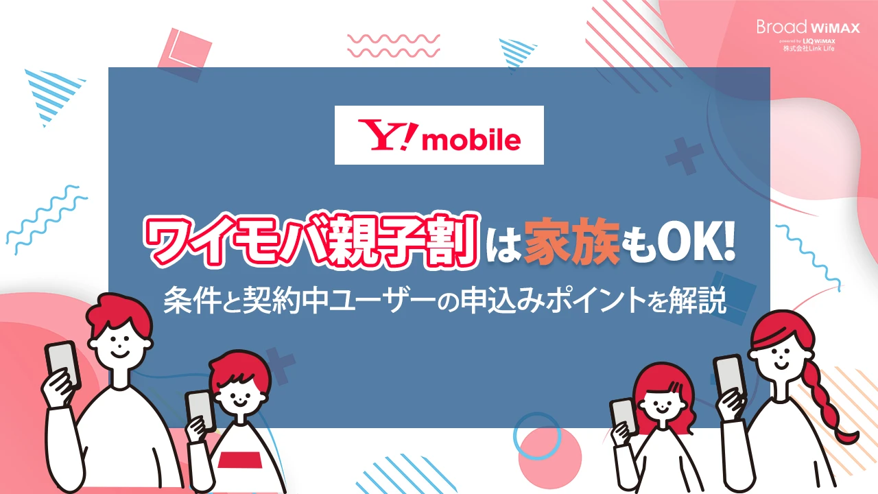 この記事では、Y!mobile親子割(学割)の条件・対象者・家族の範囲はもちろん、契約中の方が適用するための手順や、親子割を適用したらどれくらい安く利用できるのか等、実際に使用した場合の料金シミュレーションを用意しました。