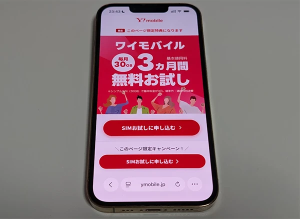 | Y!mobileが3カ月間無料でお試し可能 | シンプル3 Mの月額基本料金が3カ月間0円で利用可能 ※特別ページ限定 |